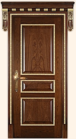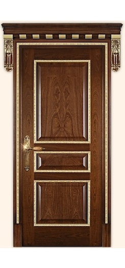 Полотно - массив сосны. Филенка - МДФ, Облицовка - натуральный шпон (красное дерево). Багет - декоративный.