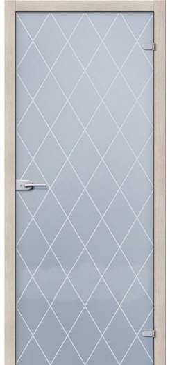 Описание: Межкомнатная дверь из закаленного сатинированного стекла с художественным рисунком в технике «алмазная грань», с еврокромкой.